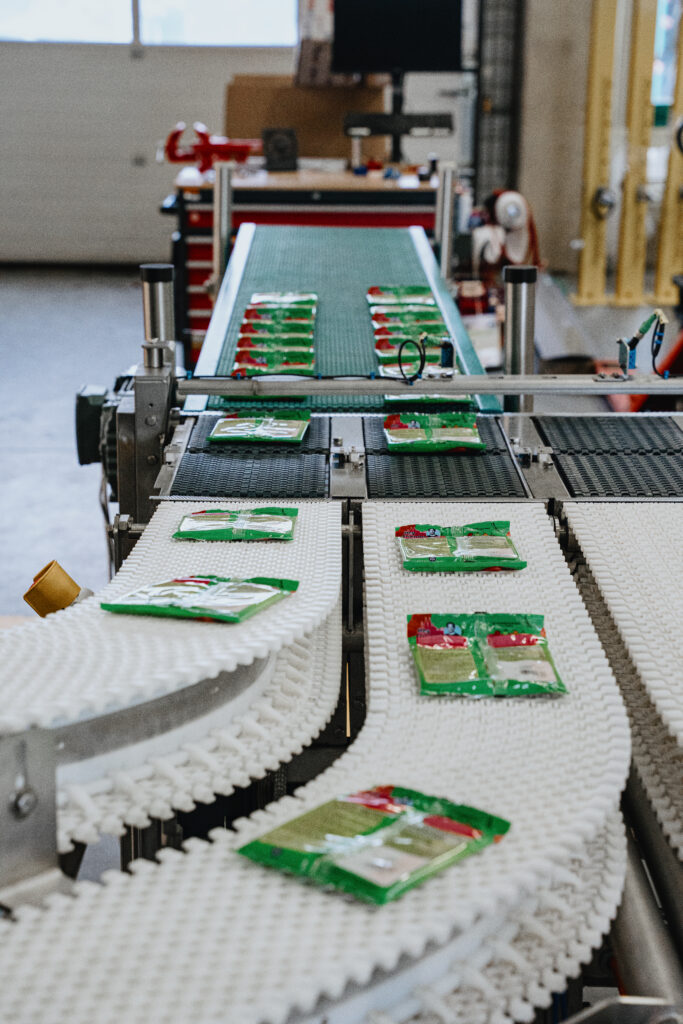 Diese Verpackungsmaschine ist mit einem Cobot ausgestattet und setzt primär verpackte Produkte vollautomatisch in Sekundärverpackungen. Unterschiedliche Behältnisse werden dabei zuverlässig in Kartons oder Kisten gesetzt. Das Besondere: Ein berührungsempfindlicher Cobot ermöglicht kollaboratives Arbeiten – ganz ohne sperrige Schutzeinrichtungen und mit maximaler Flexibilität für den Einsatz im Produktionsumfeld.