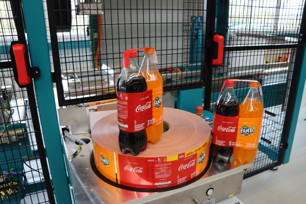 Die automatisierten Tragegriffanbringer der Baureihe PROGRIP eignen sich vor allem im Hochleistungsbereich, da bis zu 420 Gebinde pro Minute verarbeitet werden können.