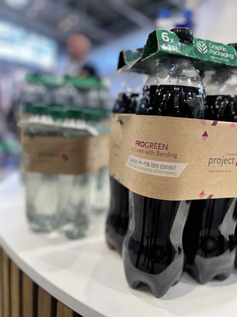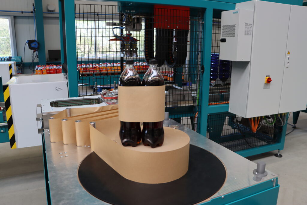 Flexible Verpackungslösung aus Papier oder Folie, die Produkte sicher bündelt, bedruckbar ist und eine ökonomische Alternative zum Schrumpfgebinde bildet.